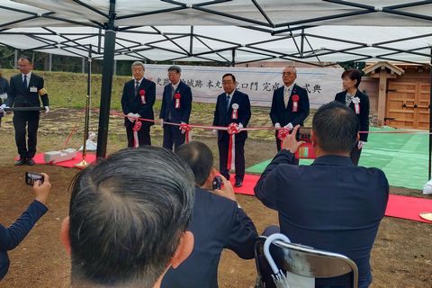 当社が工事を請け負った、国指定史跡「箕輪城跡」本丸西虎口門(ほんまるにしこぐちもん)の復元整備が完了し、完成記念式典が令和8年4月4日に開催されました。